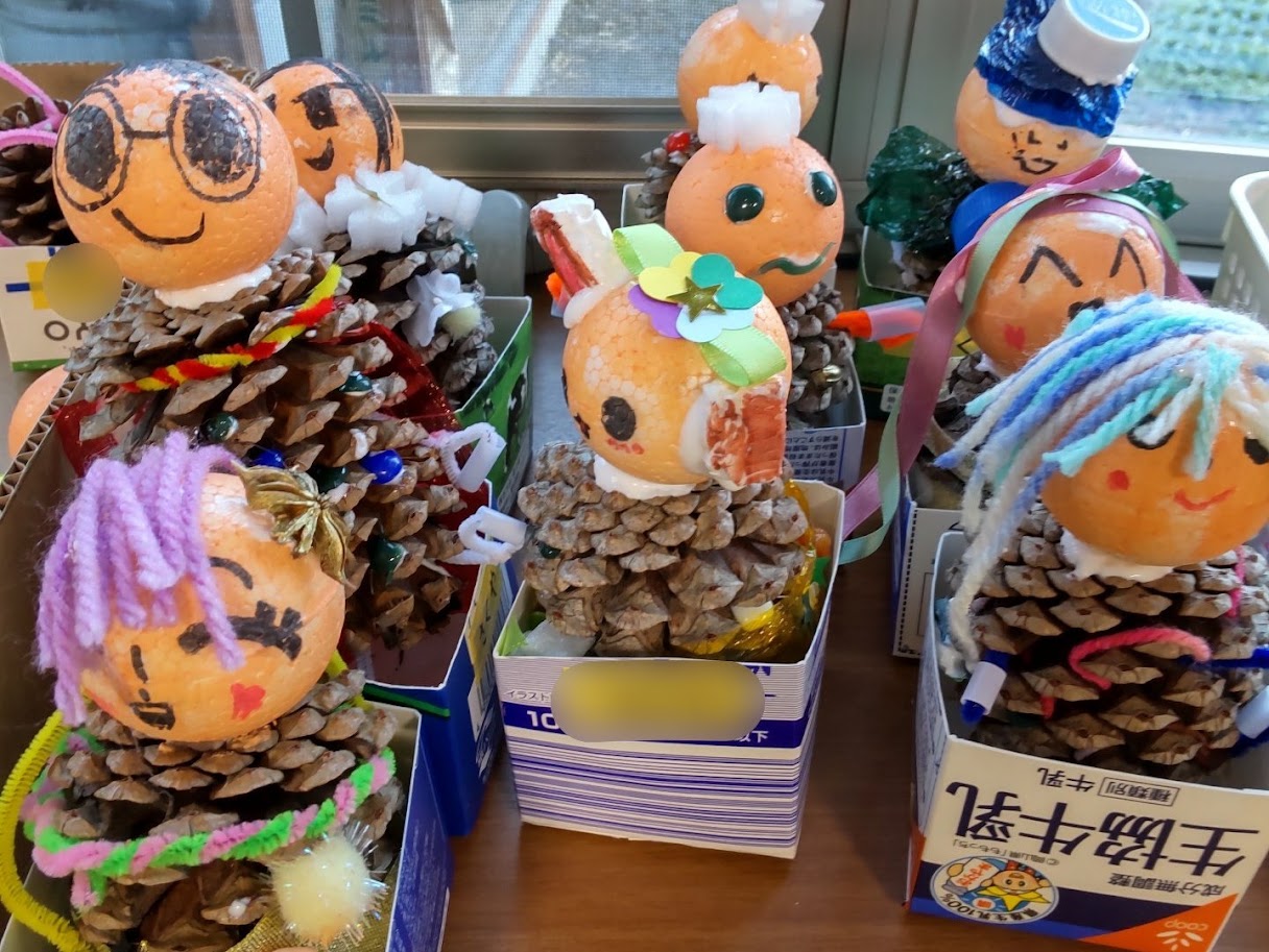 まつぼっくり人形を作りました‼ 2025.02.272025.07.18 令和7年3月より放課後等デイサービスまつぼっくりに事業所名が変更になりました。それに伴い、2月12日(水)~14日(金)にまつぼっくり人形を子どもたちに作ってもらいました!大きなまつぼっくりにそれぞれ好きなように飾りつけをしたりかわいい顔を描いたりと楽しく作ることが出来ました!出来上がったまつぼっくり人形は玄関に飾ろうと思います。ぜひ、見に来てくださいね☆