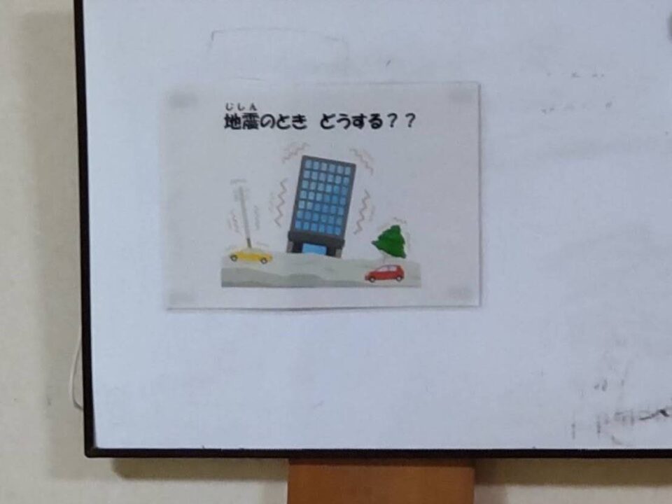 初めに、紙芝居を見ました。地震が起こるとどうなるのかしっかり見ることが出来ました!